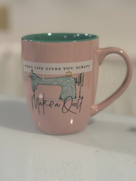 Handcrafted flower pin with magnetic pin holder, miniature scissors and a Ladybug